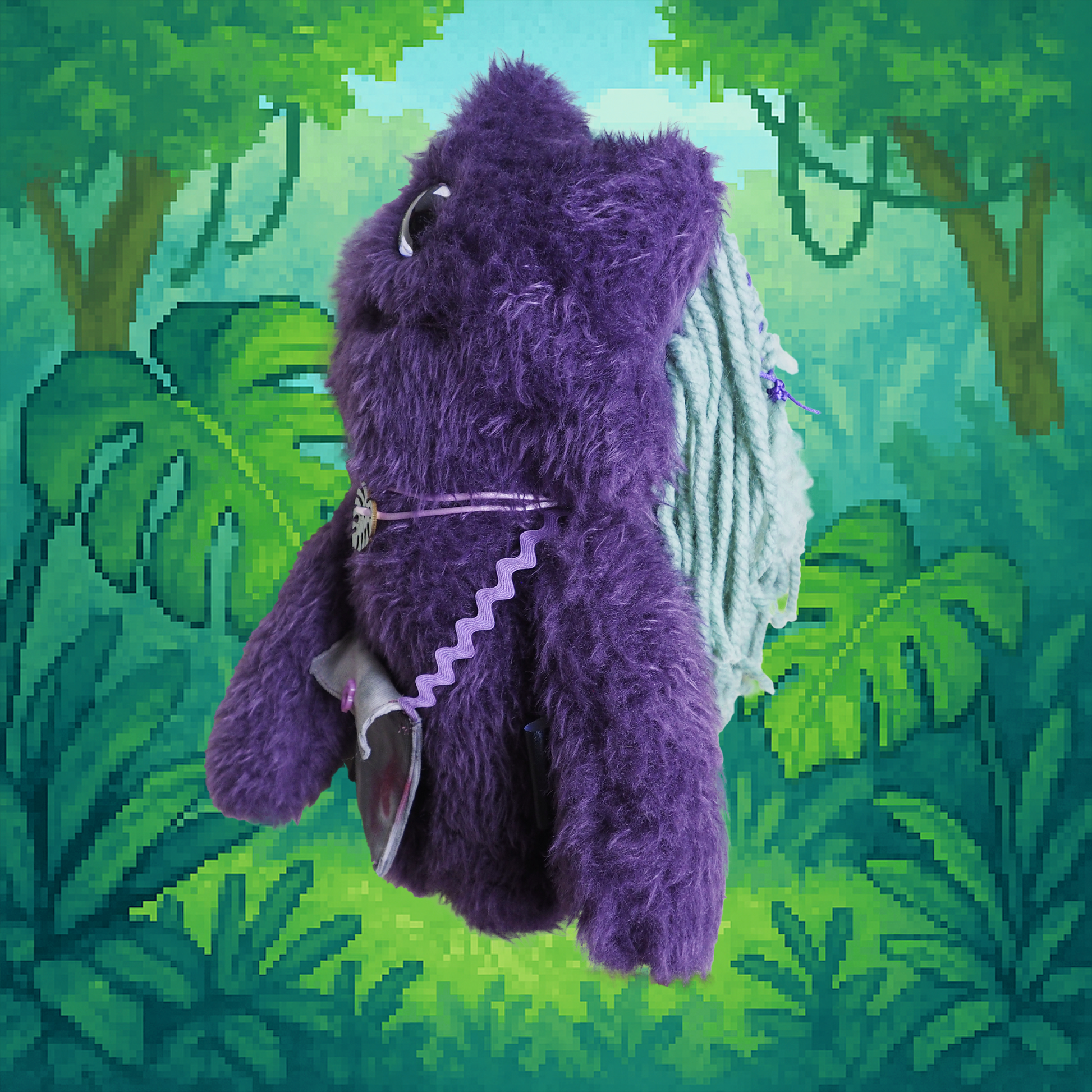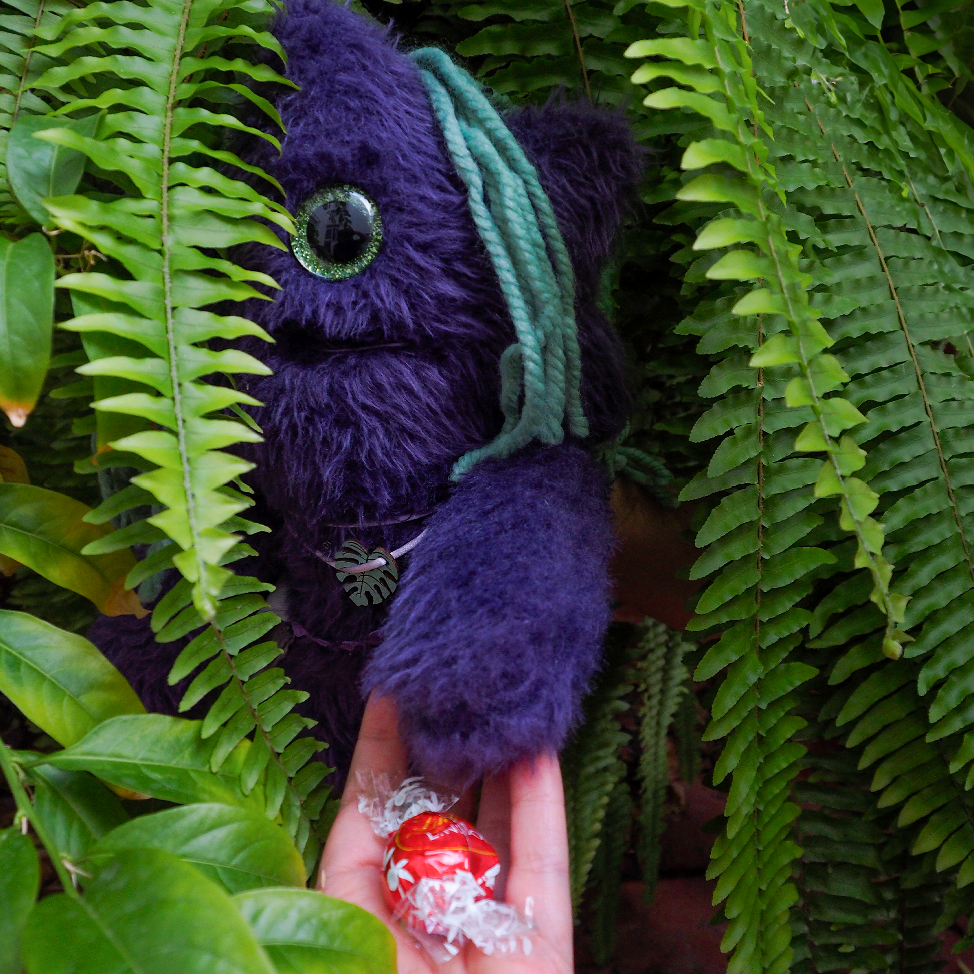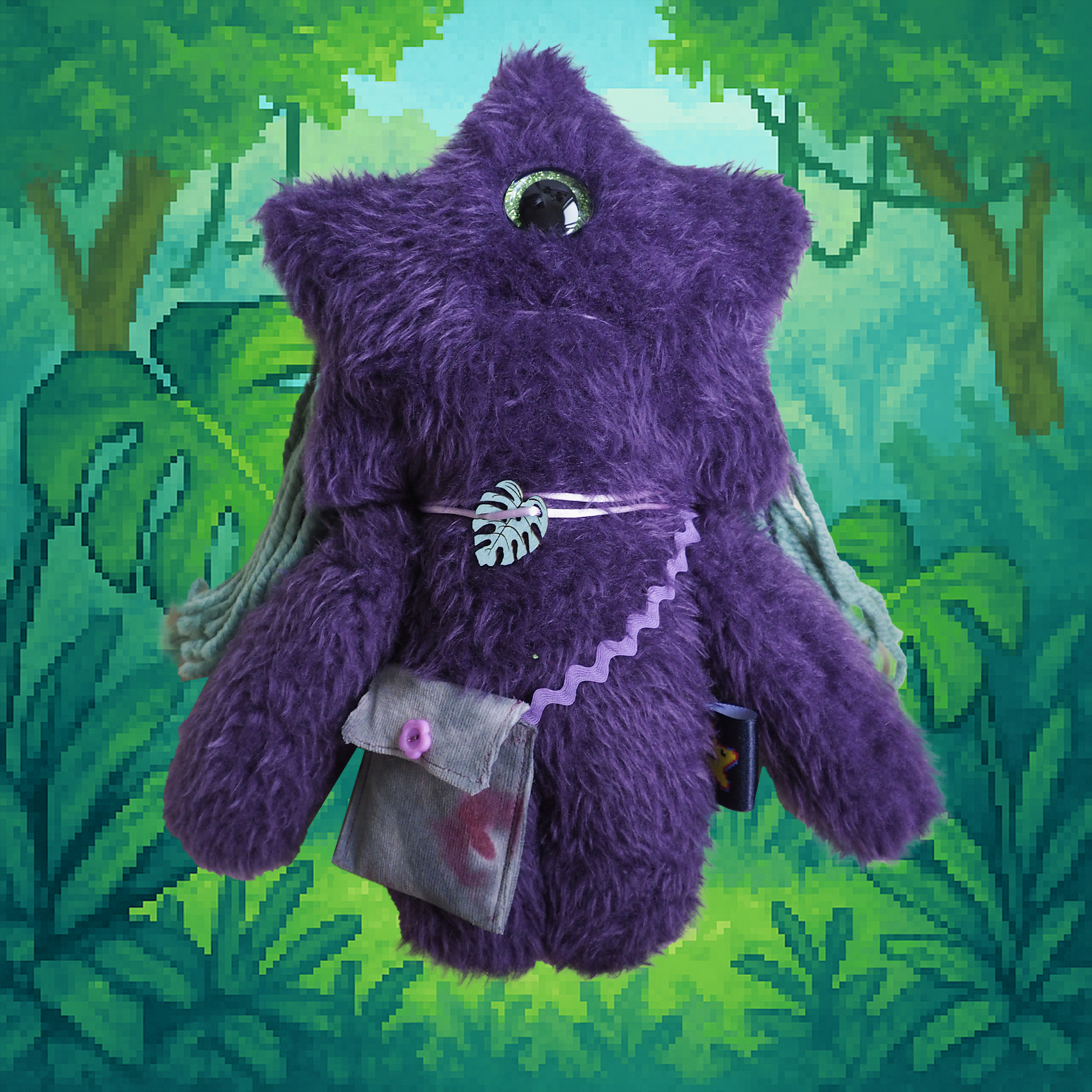 Dicen que su melena está hecha de lianas vivas, que su único ojo detecta amenazas emocionales a 5 metros y que la hoja que lleva colgando es un símbolo de tregua con la selva. No te dejes engañar por su aspecto peludo y abrazable: este Estrelli ha liderado hormigas, hablado con plantas y podría volver a desaparecer entre la vegetación si no recibe suficiente cariño… o cacao.